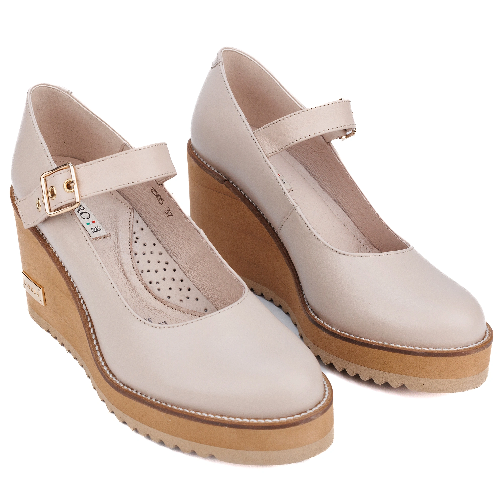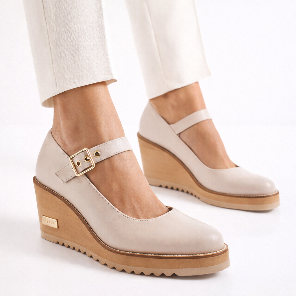 Cechą wyróżniającą ten model jest niezwykle lekka platforma, dzięki której wysokość koturna jest niemal niewyczuwalna, co pozwala na komfort noszenia przez cały dzień. Wnętrze buta zostało wykończone miękką, naturalną wkładką, która zawiera delikatną poduszeczkę masującą stopę, gwarantując maksymalną wygodę przy każdym kroku.