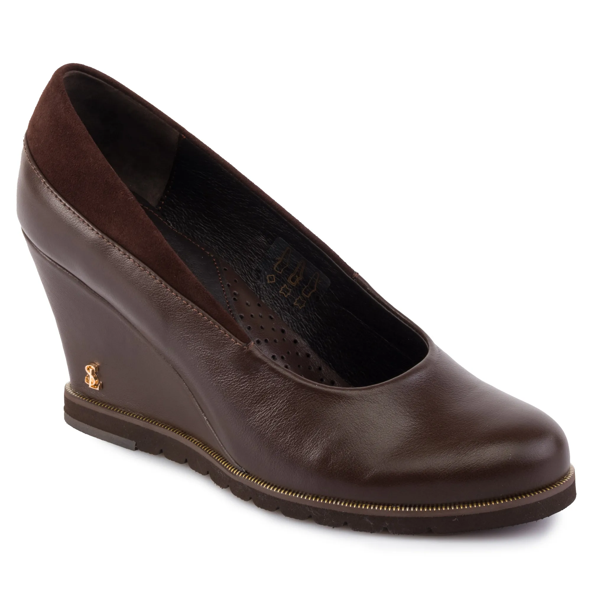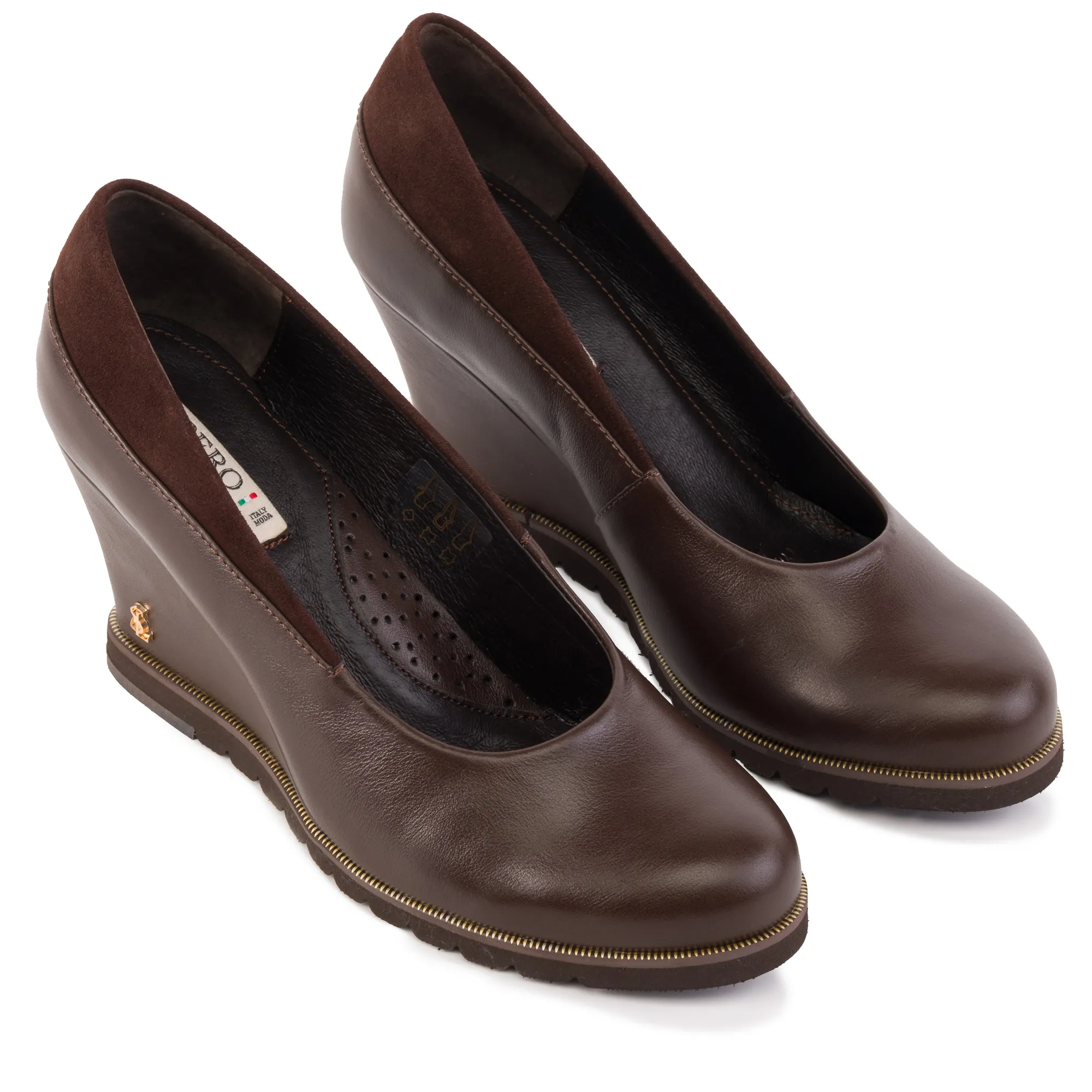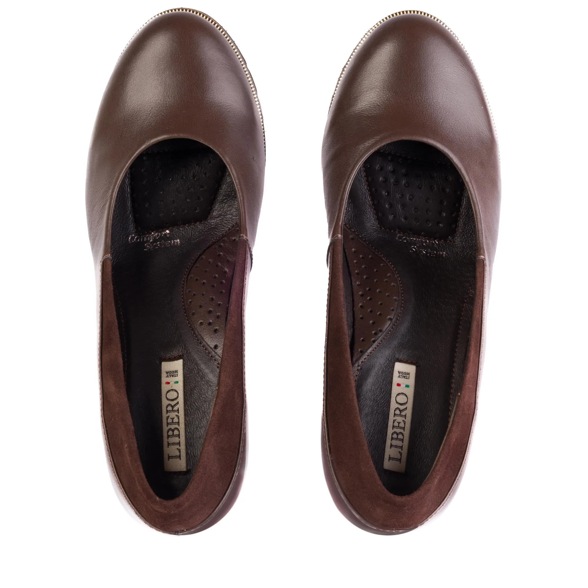 Czółenka skórzane brązowe na koturnie Libero 2530- 515/516
