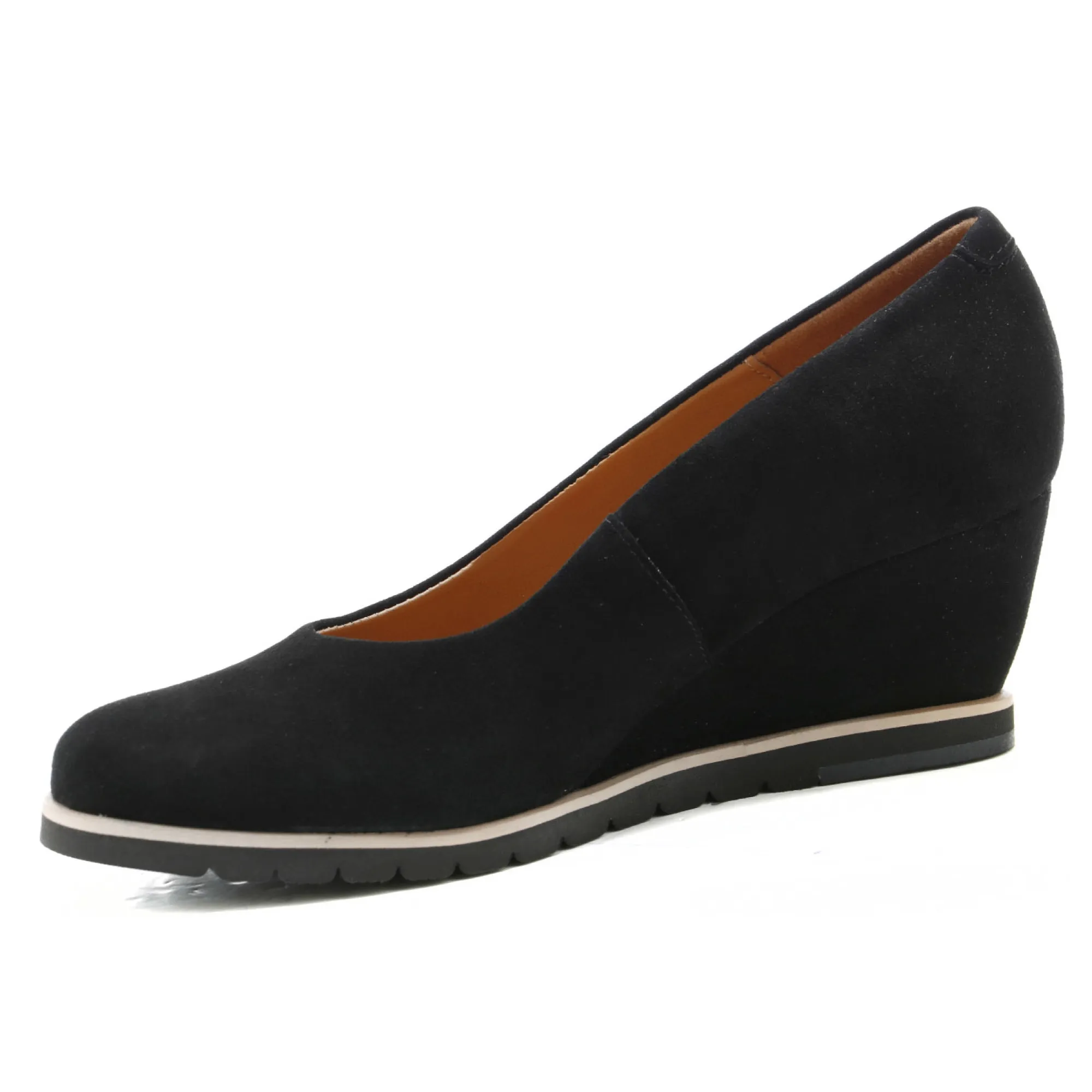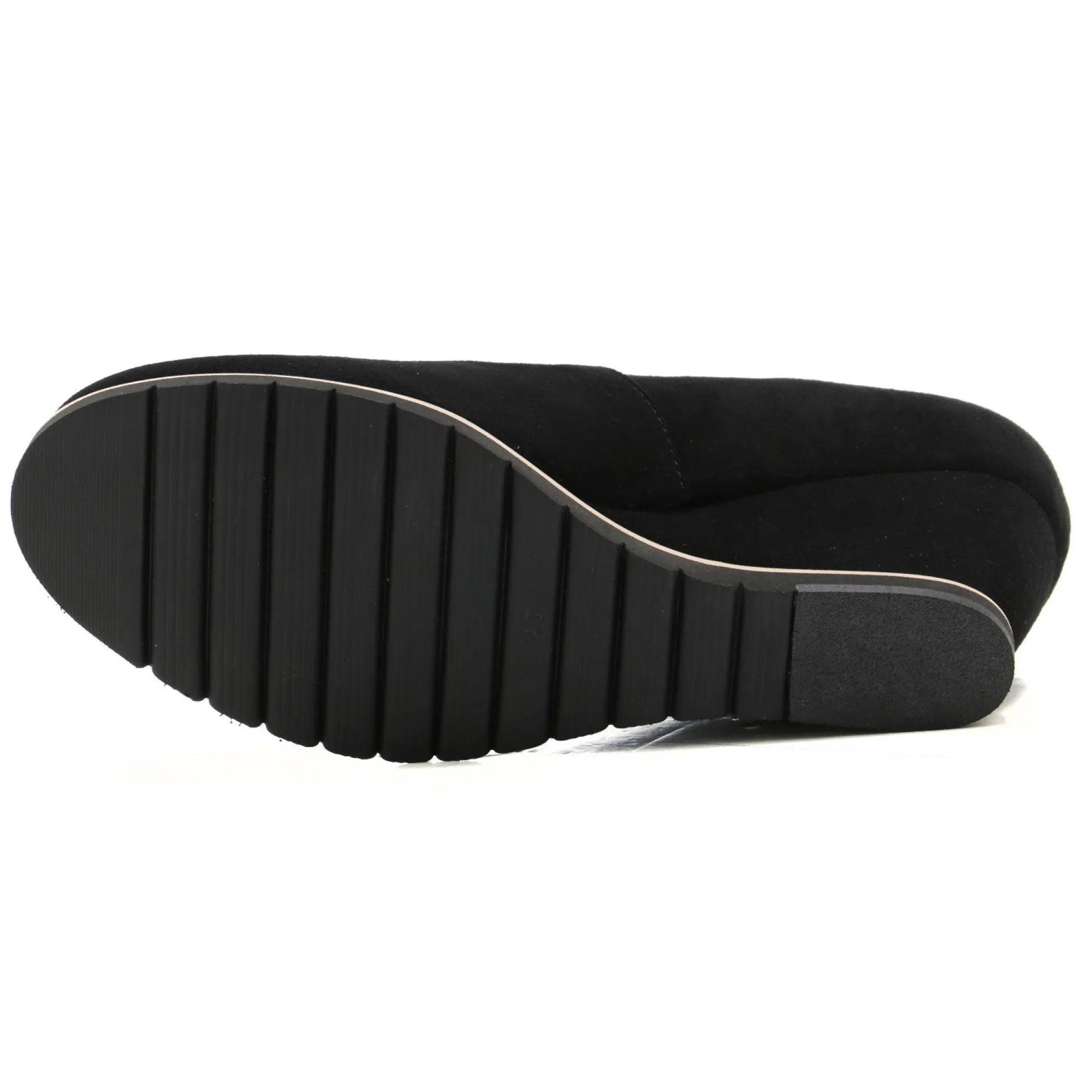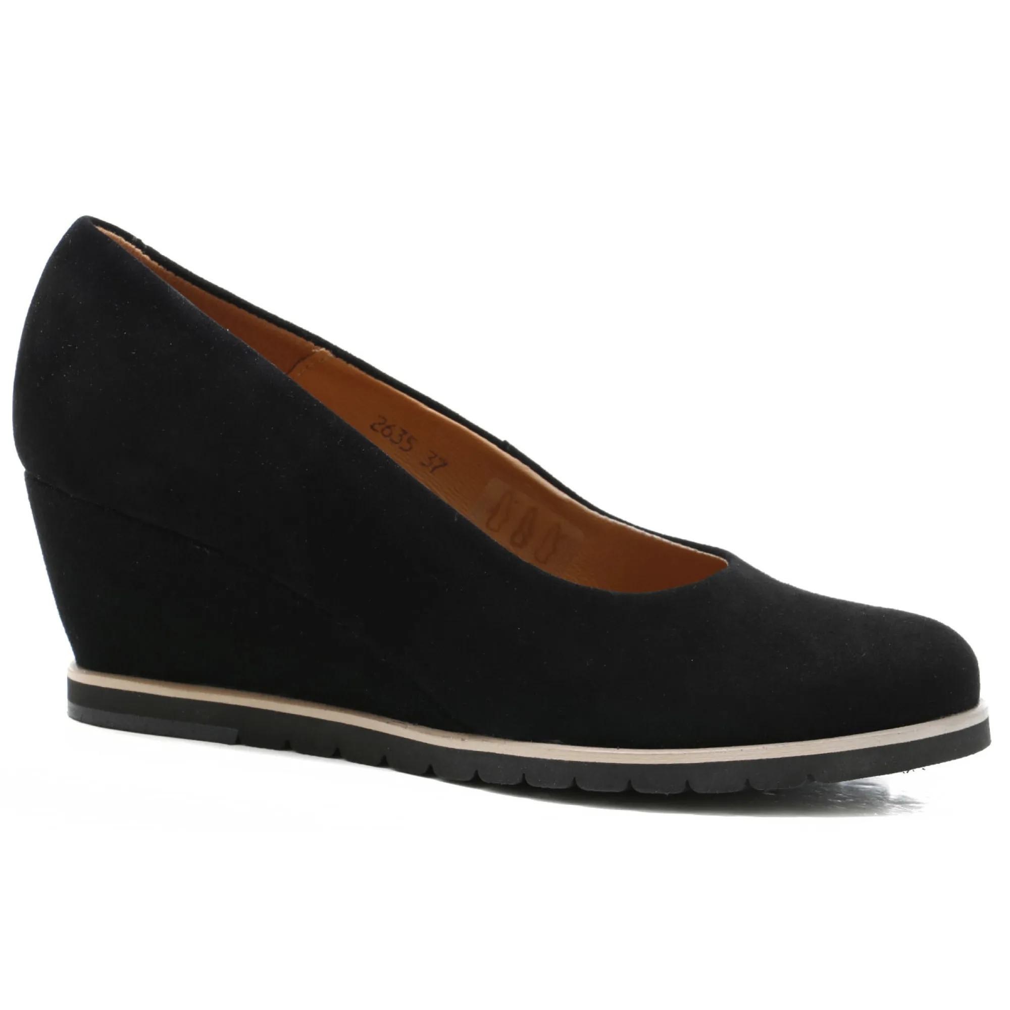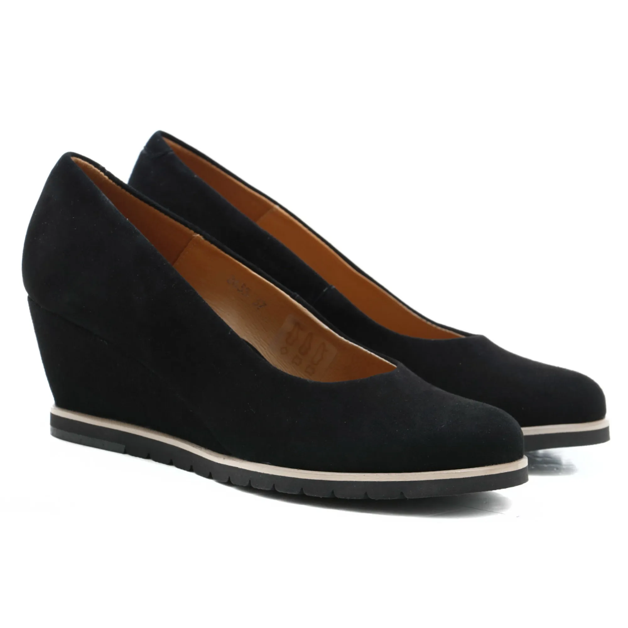 Eleganckie czółenka na niskim koturnie, które łączą komfort z klasycznym stylem. Wykonane z czarnej zamszowej skóry, prezentują się subtelnie i ponadczasowo. Wnętrze butów zostało starannie zaprojektowane, by zapewnić maksymalną wygodę – miękka wkładka ze skóry naturalnej oraz dodatkowa warstwa gąbki pod stopą sprawiają, że chodzenie w nich to czysta przyjemność. Buty są niezwykle lekkie, a ich ergonomiczna podeszwa z miękkiego materiału absorbuje wstrząsy, gwarantując komfort przez cały dzień. Doskonale nadają się na co dzień, a także świetnie sprawdzą się w bardziej formalnych stylizacjach. Koturna została precyzyjnie wyprofilowana, co sprawia, że nie odczuwasz jej wysokości, a chód jest stabilny i pewny. To elegancki wybór, który pasuje do wielu różnych okazji i perfekcyjnie komponuje się z rozmaitymi ubraniami. Idealne połączenie komfortu, stylu i funkcjonalności!