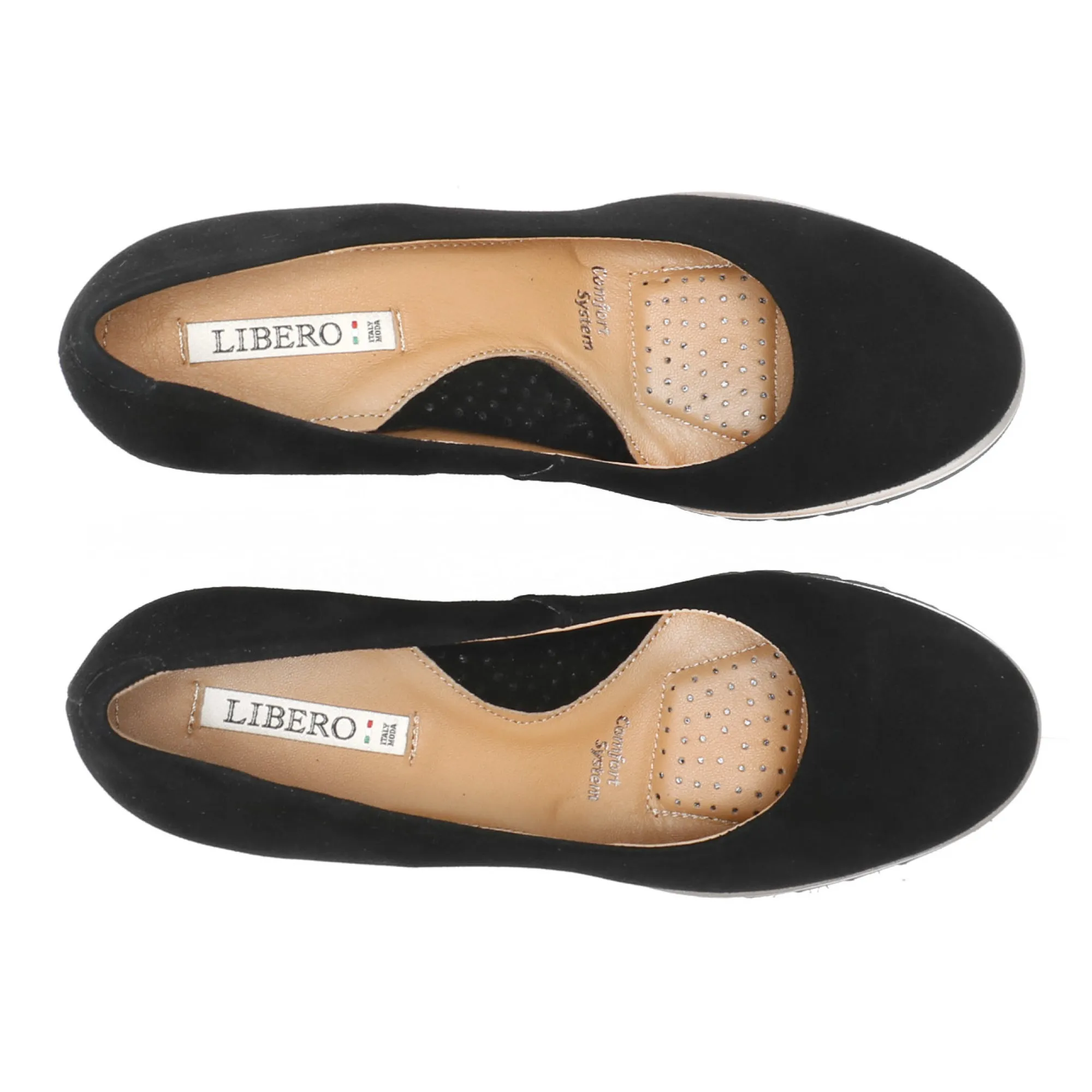 Czółenka skórzane czarne zamszowe na koturnie Libero 2635 135