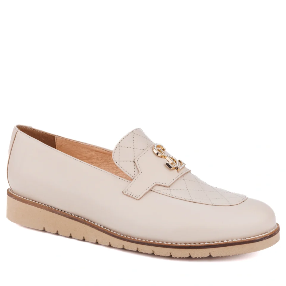 Wykonane z wysokiej jakości beżowej skóry naturalnej, zachwycają swoją ponadczasową formą i delikatnym, okrągłym noskiem, który pięknie układa się na stopie. Neutralny odcień beżu optycznie wydłuża nogi i doskonale komponuje się zarówno z jasnymi, jak i ciemnymi stylizacjami – od zwiewnych sukienek po eleganckie spodnie.