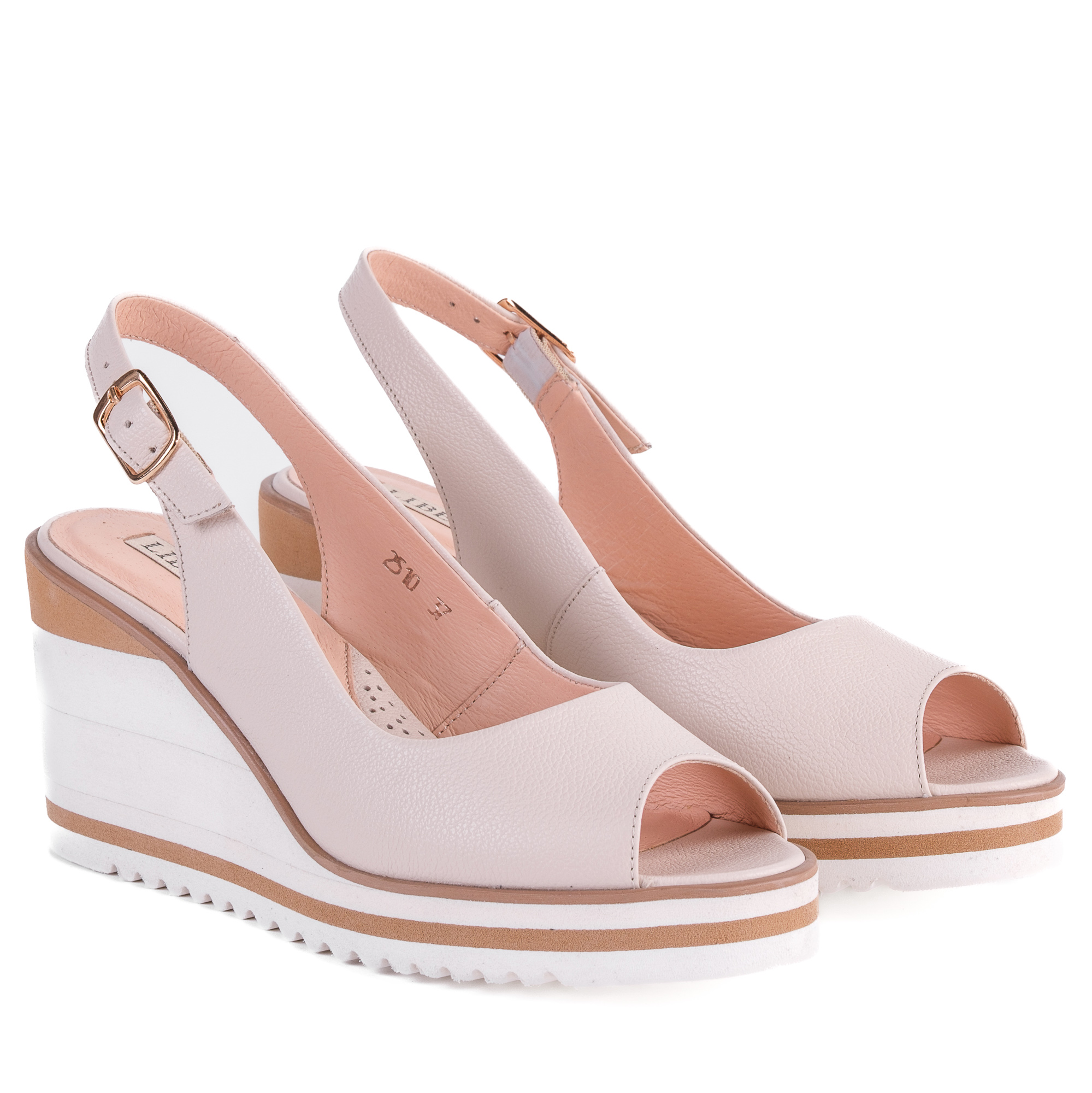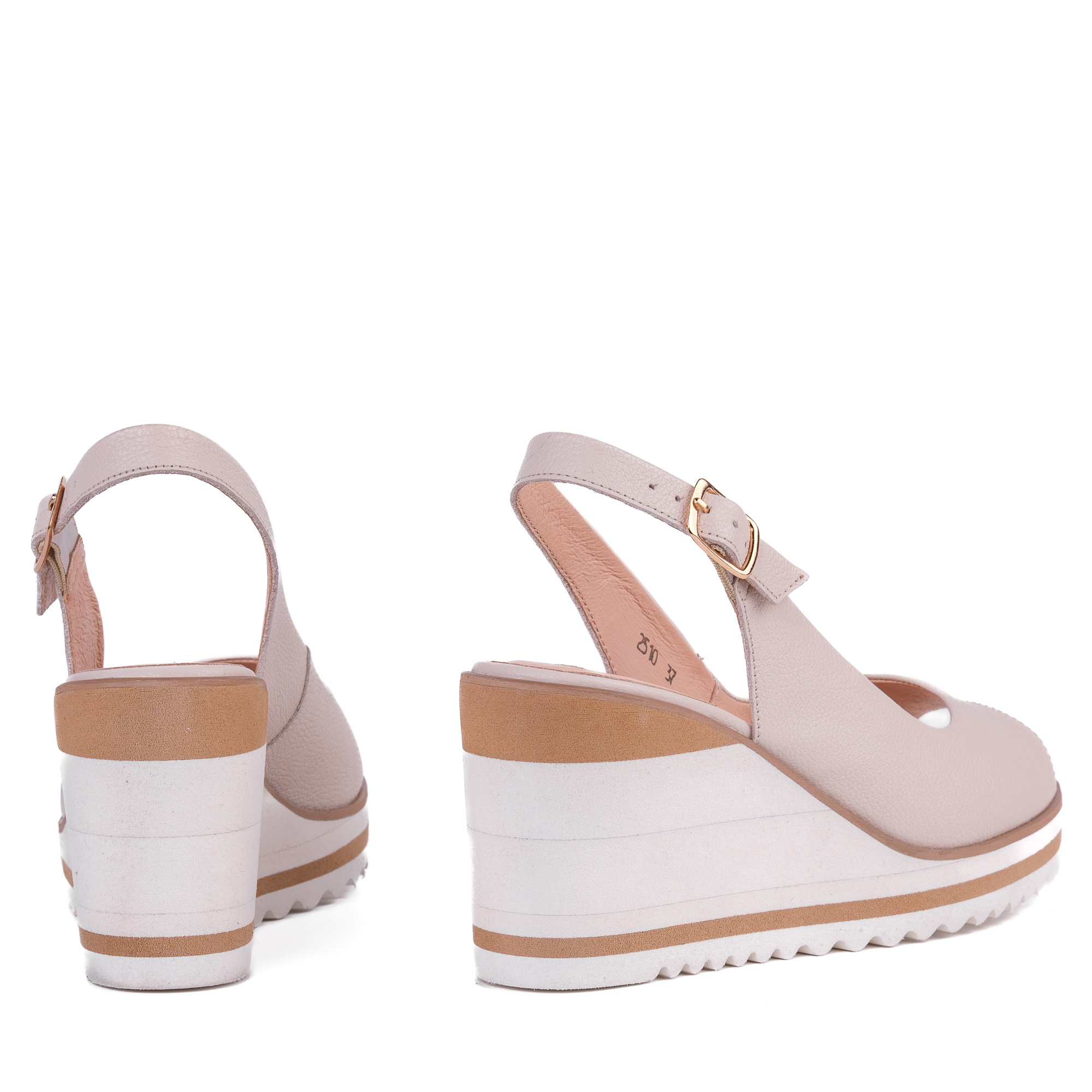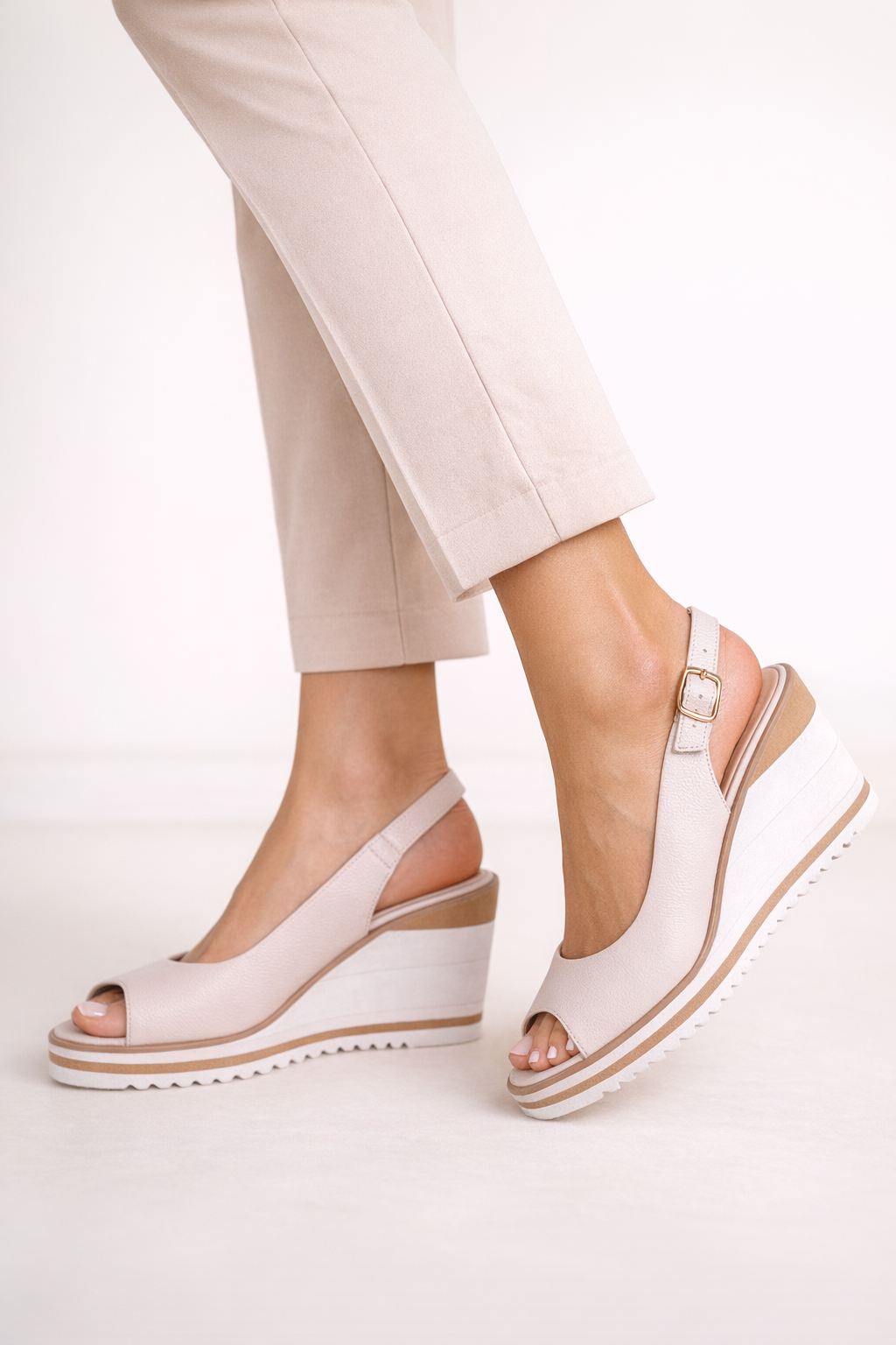 Eleganckie sandały damskie na lekkim koturnie – beżowa skóra naturalna