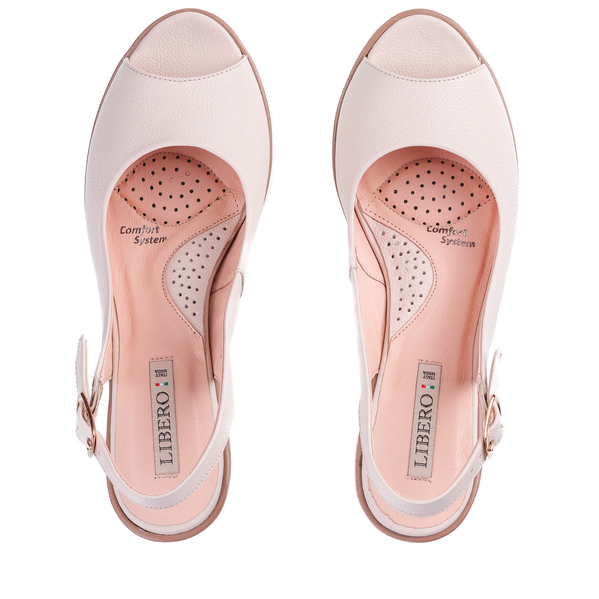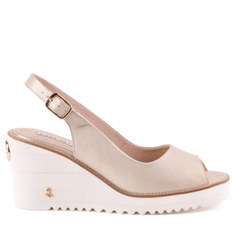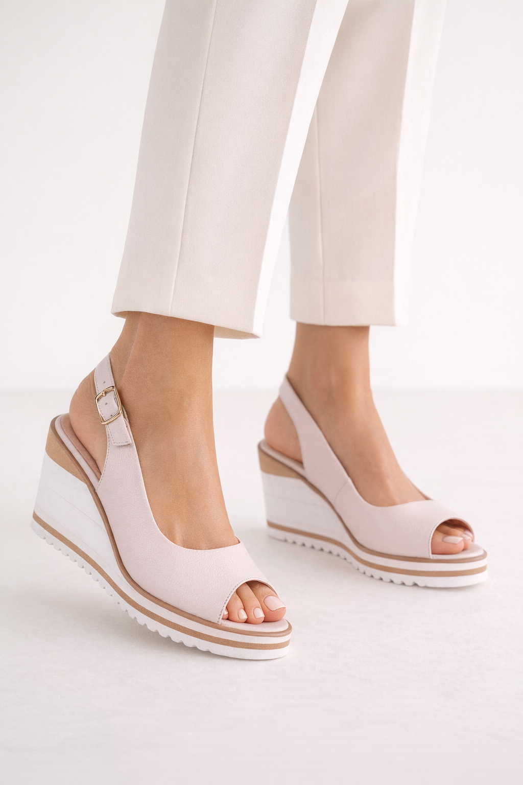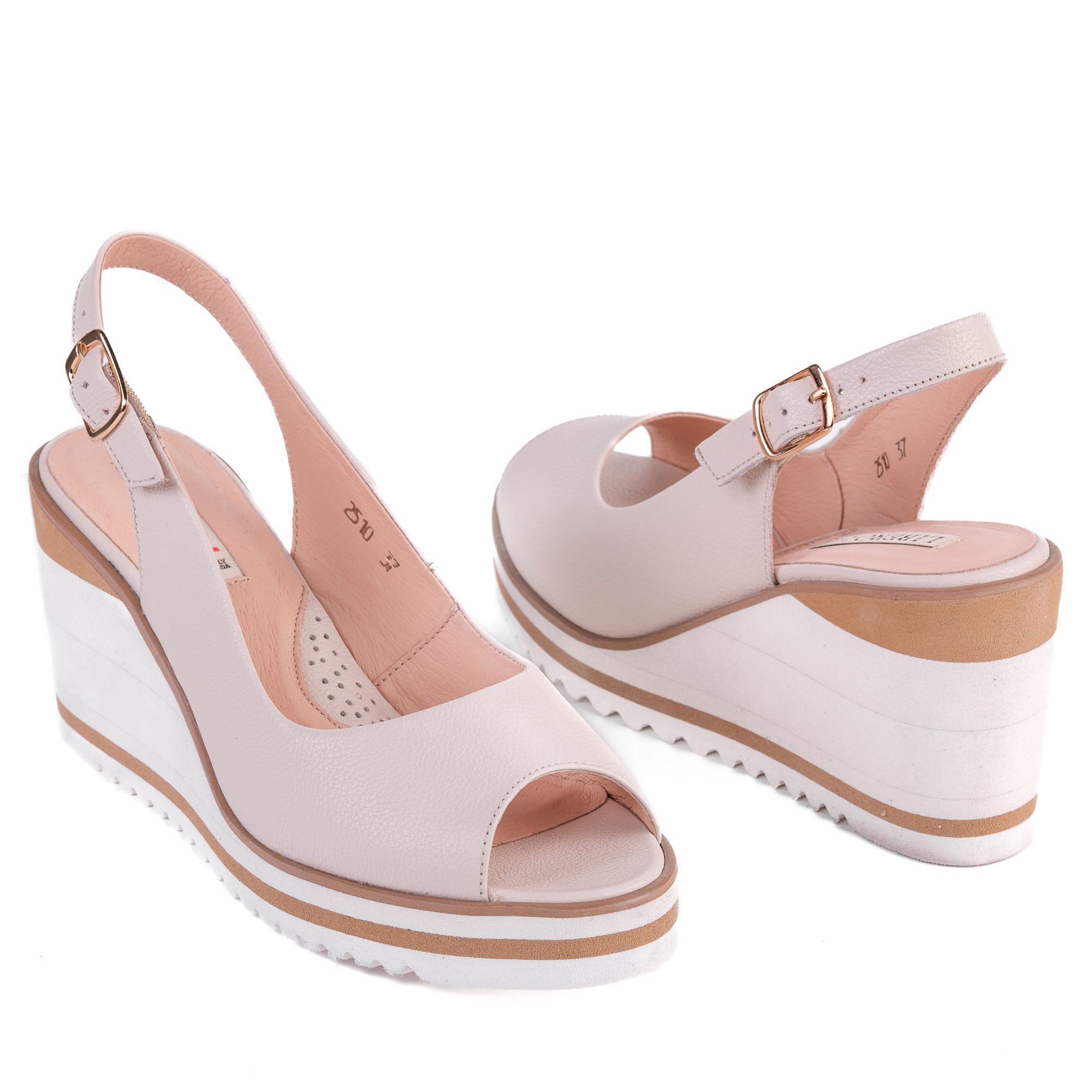 Eleganckie sandały damskie na lekkim koturnie – beżowa skóra naturalna