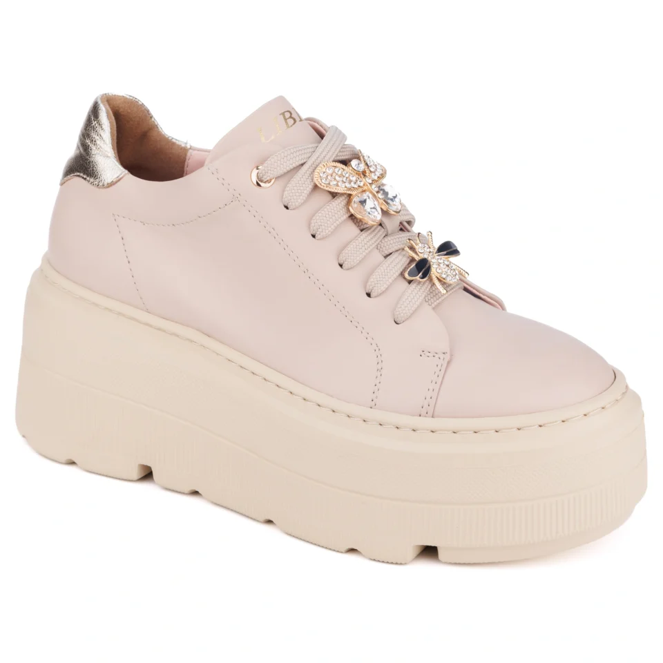 Wzbogać swoją stylizację o te niezwykle modne sneakersy, które łączą elegancję z miejskim stylem. Wykonane z wysokiej jakości skóry licowej, prezentują się szykownie dzięki złotym detalom, które dodają im wyjątkowego charakteru.