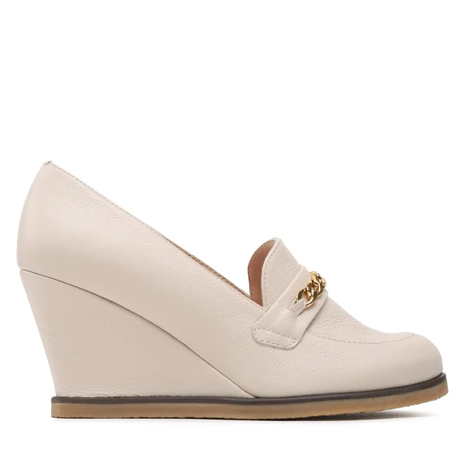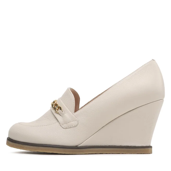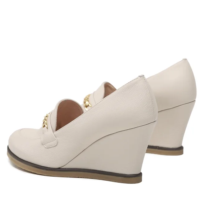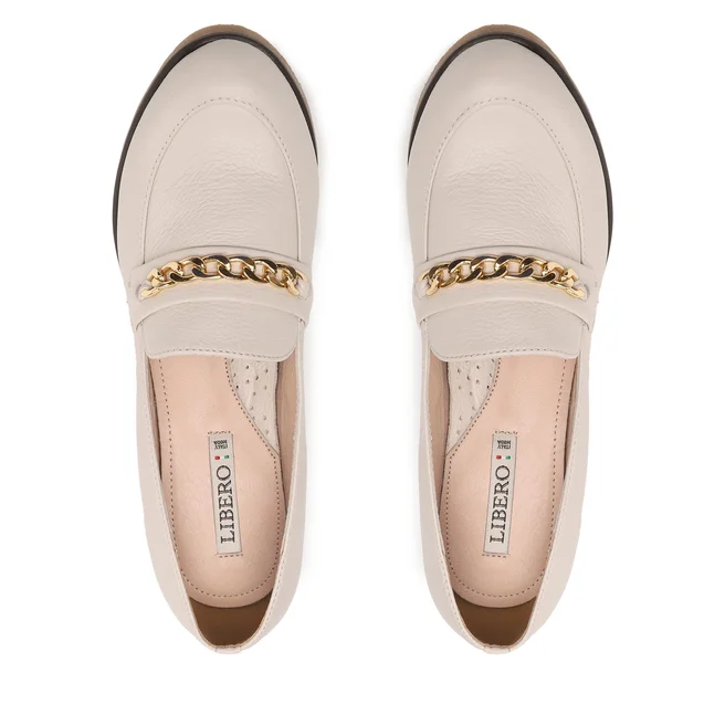 Mokasyny skórzane beżowe na koturnie Libero 2580 458