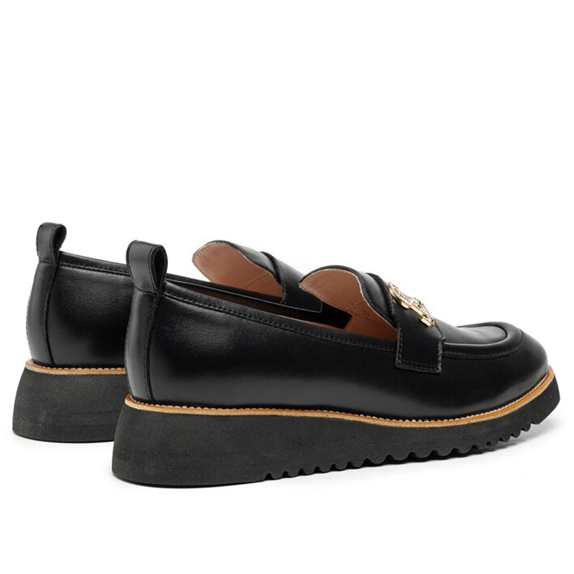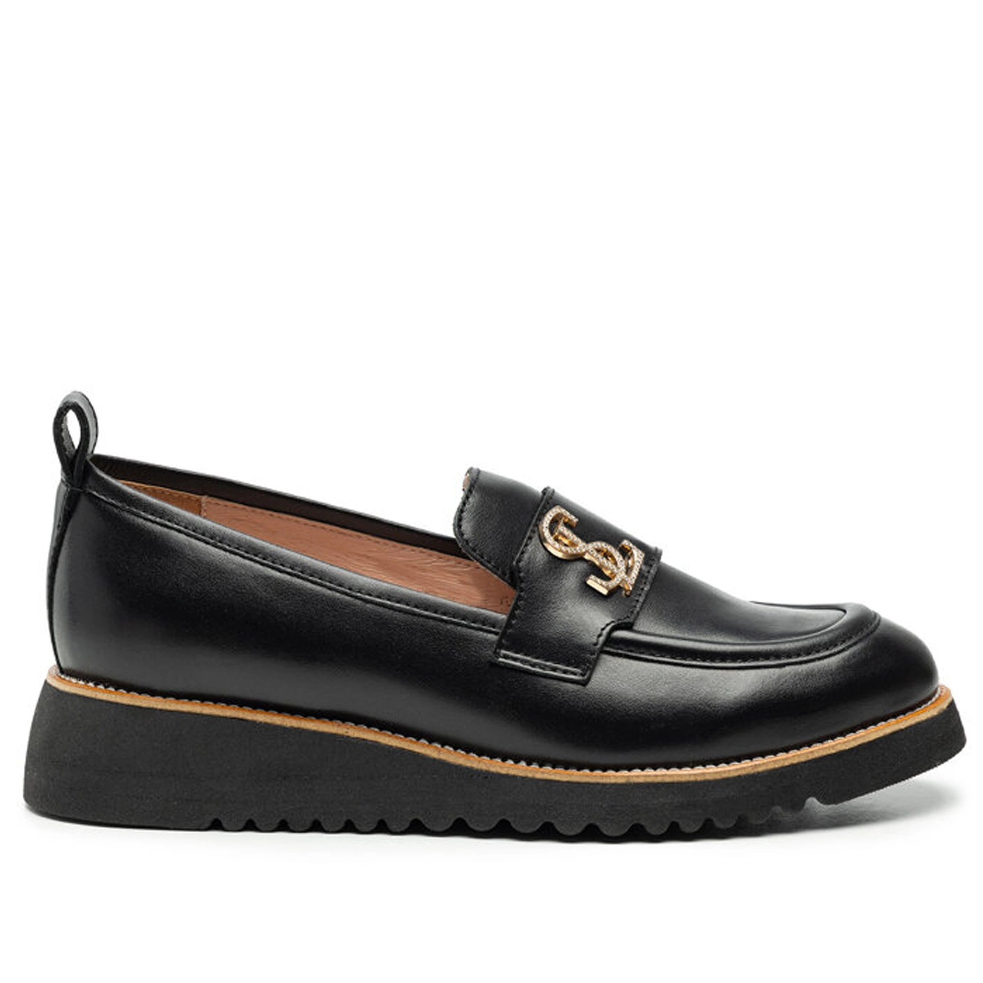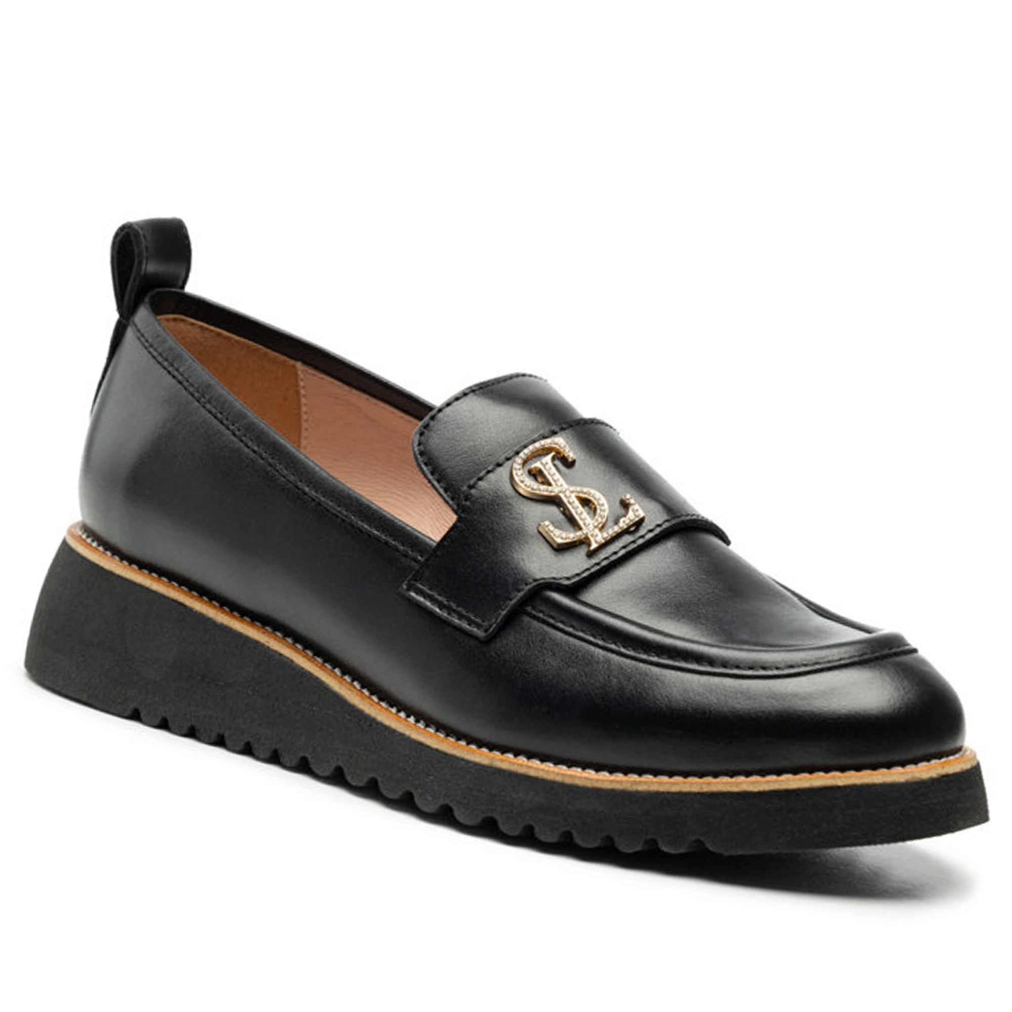 Lordsy z czarnej naturalnej skóry to elegancka i ponadczasowa propozycja dla osób ceniących komfort i styl. Wykonane z wysokiej jakości skóry naturalnej, gwarantują trwałość oraz wyjątkowy wygląd. Złota ozdoba dodaje im subtelnej elegancji, sprawiając, że buty stają się doskonałym uzupełnieniem zarówno codziennych, jak i bardziej formalnych stylizacji. Dodatkowo, miękka wkładka zapewnia komfort noszenia przez cały dzień, dbając o Twoje stopy. Idealne do biura, na spotkania biznesowe czy na wieczorne wyjścia.